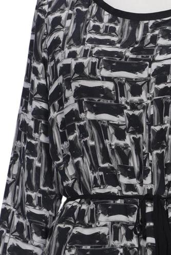 | Details | Chiffon, Dreiviertelarm, Bindegürtel, Rundhals, Motivprint |