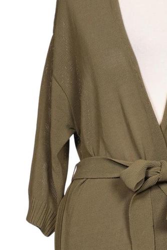| Details | Grobstrick, Dreiviertelarm, Bindegürtel, verschlusslos, Einfarbig |