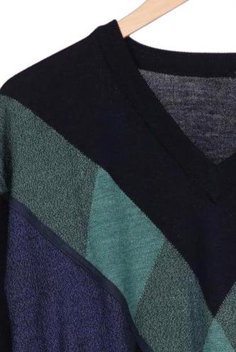 | Details | Grobstrick, Langarm, V-Ausschnitt, Rauten |