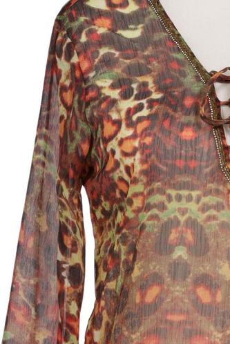 | Details | Schnürung, Chiffon, Langarm, V-Ausschnitt, verschlusslos, Leopard |