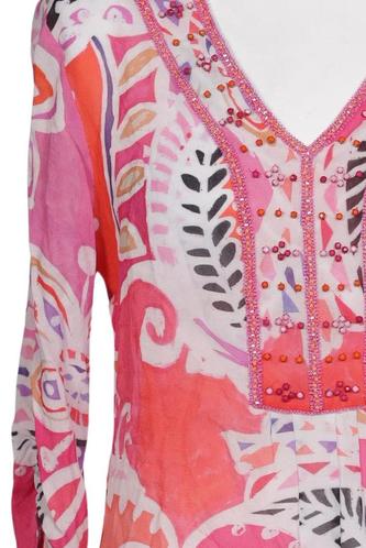 | Details | Jersey, Dreiviertelarm, V-Ausschnitt, verschlusslos, Floral, Paisley |