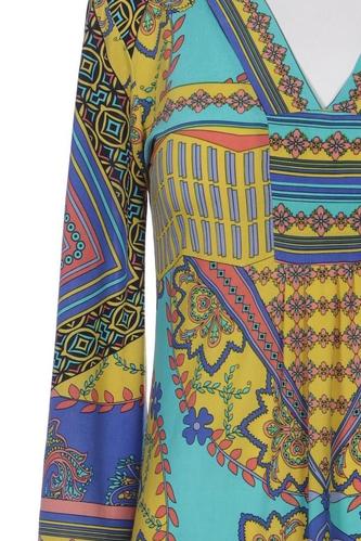 | Details | Jersey, metallic, Dreiviertelarm, V-Ausschnitt, Motivprint |