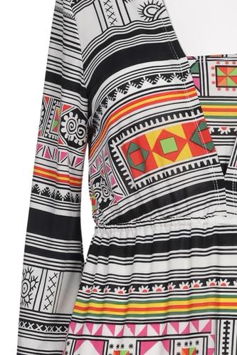 | Details | Jersey, Dreiviertelarm, V-Ausschnitt, Ethno, Streifen |