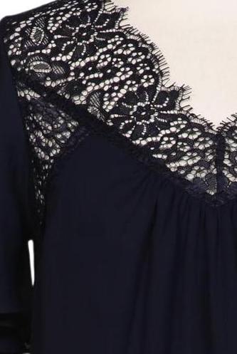 | Details | Jersey, Spitze, Kurzarm, V-Ausschnitt, verschlusslos, Einfarbig |