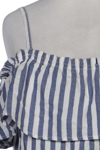 | Details | Jersey, Rüschen, Kurzarm, V-Ausschnitt, verschlusslos, Streifen |