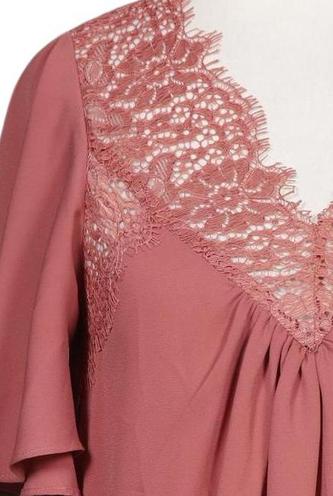 | Details | Jersey, Spitze, Kurzarm, V-Ausschnitt, verschlusslos, Einfarbig |