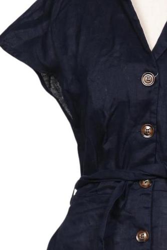| Details | Kurzarm, Bindegürtel, V-Ausschnitt, Front Knopfleiste, Einfarbig |