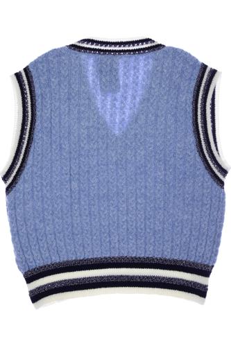 | Details | Grobstrick, ärmellos, V-Ausschnitt, Streifen |