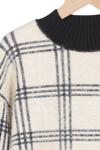 | Details | Grobstrick, Langarm, Rundhals, Kariert |