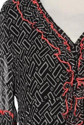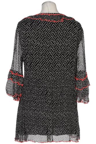 | Details | Rüschen, Chiffon, Dreiviertelarm, V-Ausschnitt, verschlusslos, Motivprint |