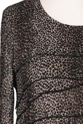 | Details | Rüschen, Chiffon, Langarm, Rundhals, verschlusslos, Leopard |