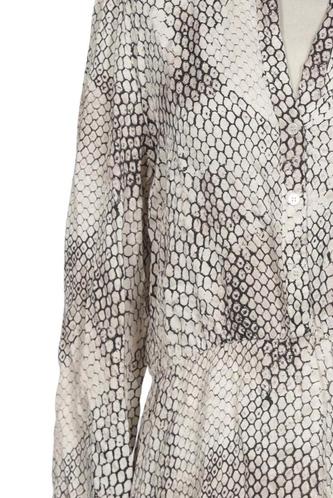 | Details | Satin, Langarm, V-Ausschnitt, Motivprint |