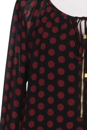 | Details | Chiffon, Langarm, Rundhals, verschlusslos, Punkte |