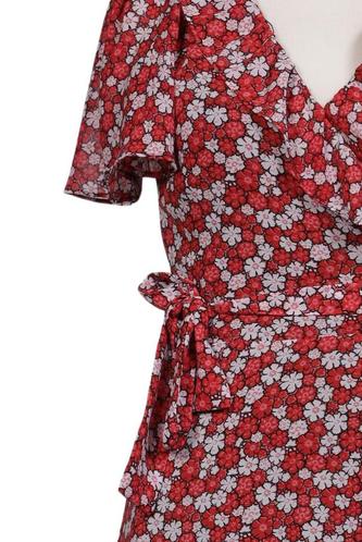 | Details | Rüschen, Kurzarm, V-Ausschnitt, Floral |
