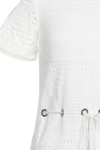 | Details | Schnürung, Lochstickerei, Kurzarm, Rundhals, Reißverschluss/Knöpfe hinten, Einfarbig |
