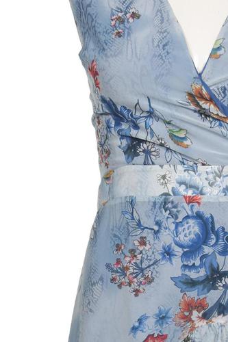 | Details | Rüschen, Chiffon, ärmellos, Bindegürtel, Wickeloptik, V-Ausschnitt, Floral |