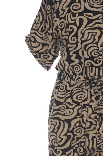 | Details | Kurzarm, Bindegürtel, V-Ausschnitt, Motivprint |