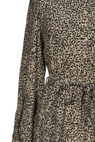 | Details | Langarm, Bindegürtel, Rundhals, Front Knopfleiste, Leopard |