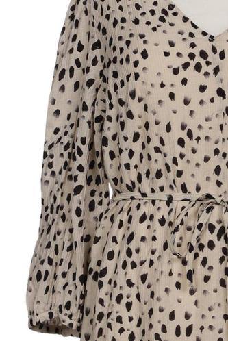 | Details | Dreiviertelarm, Bindegürtel, V-Ausschnitt, Punkte |