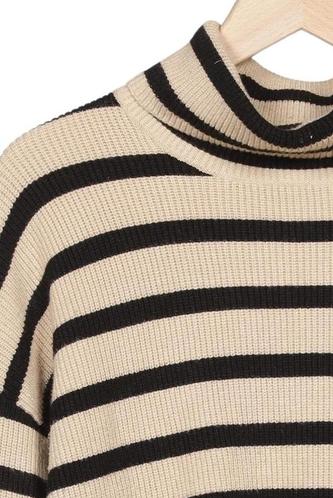 | Details | Grobstrick, Langarm, Rollkragen, Streifen |