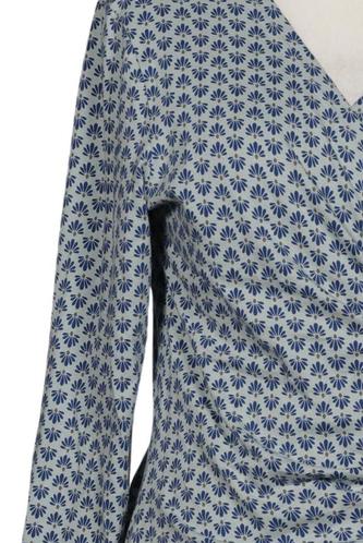 | Details | Jersey, Langarm, Wickeloptik, V-Ausschnitt, Motivprint |