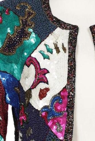 | Details | Pailletten, metallic, Langarm, Rundhals, Front Knopfleiste, Motivprint |