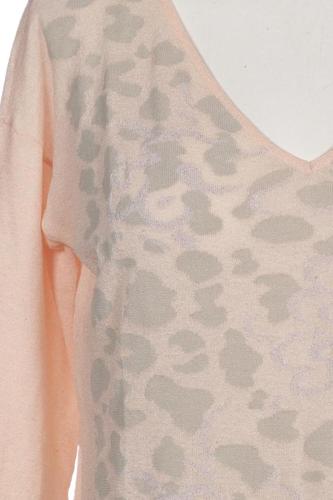 | Details | Grobstrick, Dreiviertelarm, V-Ausschnitt, Leopard |