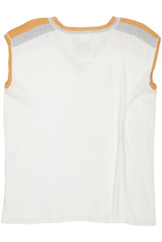 | Details | Grobstrick, ärmellos, V-Ausschnitt, Streifen |
