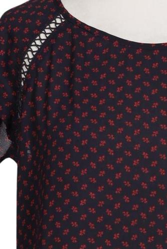 | Details | Chiffon, Lochstickerei, Kurzarm, Rundhals, verschlusslos, Punkte |