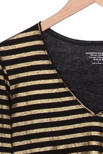 | Details | Jersey, metallic, Langarm, V-Ausschnitt, Streifen |