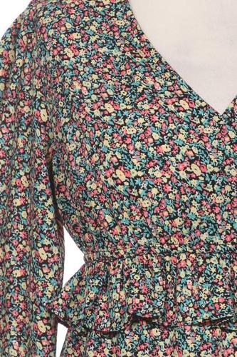 | Details | Jersey, Rüschen, Dreiviertelarm, Bindegürtel, V-Ausschnitt, verschlusslos, Floral |