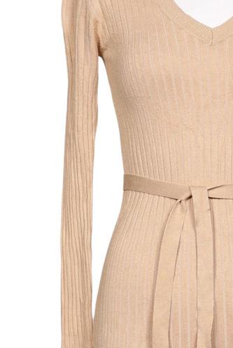 | Details | Grobstrick, Langarm, Bindegürtel, V-Ausschnitt, Einfarbig |