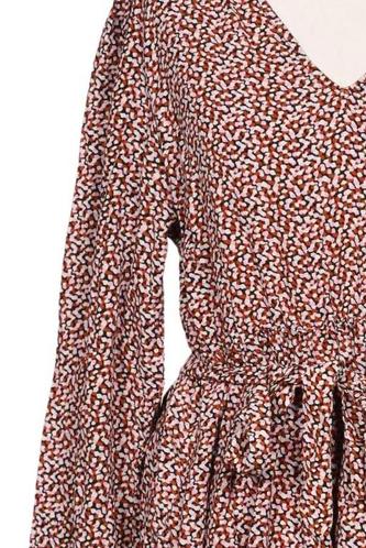 | Details | Rüschen, Langarm, Bindegürtel, V-Ausschnitt, Floral |