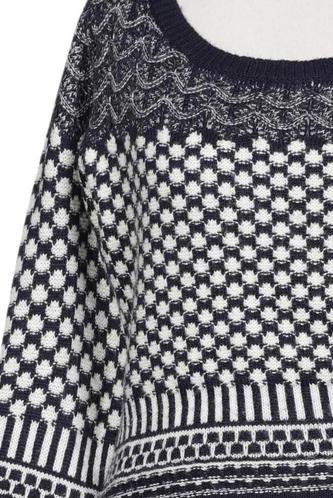 | Details | Grobstrick, Dreiviertelarm, Rundhals, Ethno |