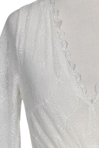 | Details | Spitze, Lochstickerei, Kurzarm, V-Ausschnitt, verschlusslos |