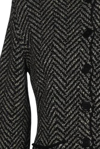 | Details | Grobstrick, Langarm, Rundhals, Front Knopfleiste, Hahnentritt |
