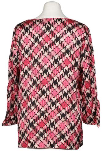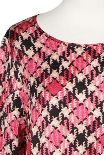 | Details | Satin, Langarm, Rundhals, verschlusslos, Hahnentritt |