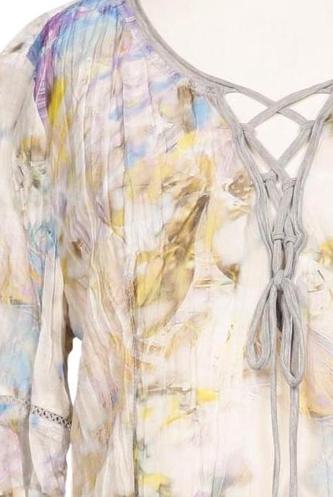 | Details | Schnürung, Chiffon, Dreiviertelarm, V-Ausschnitt, verschlusslos, Floral |