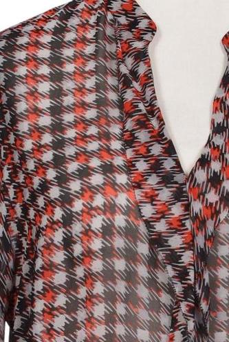 | Details | Chiffon, Langarm, V-Ausschnitt, verschlusslos, Kariert |