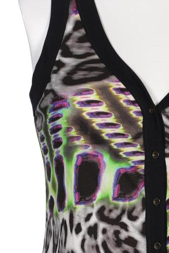 | Details | Jersey, ärmellos, V-Ausschnitt, verschlusslos, Leopard, Motivprint |