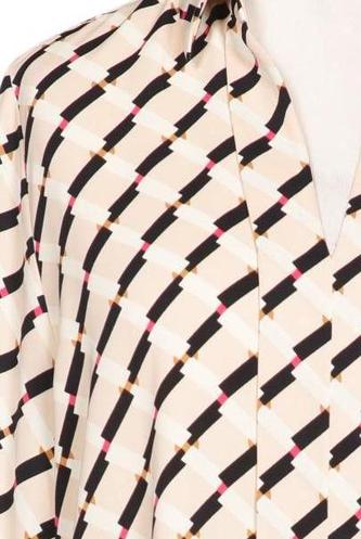 | Details | Satin, Langarm, V-Ausschnitt, verschlusslos, Motivprint |