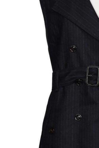 | Details | ärmellos, Bindegürtel, V-Ausschnitt, Front Knopfleiste, Nadelstreifen |