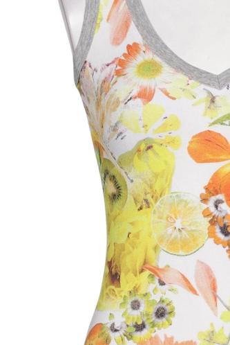| Details | Jersey, ärmellos, V-Ausschnitt, Floral |