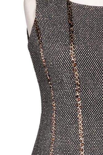 | Details | metallic, Grobstrick, ärmellos, Rundhals, Reißverschluss/Knöpfe hinten, Streifen |