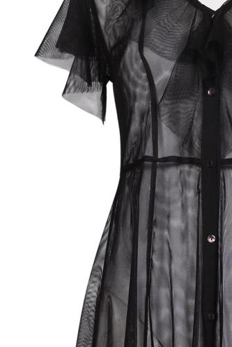 | Details | Rüschen, Tüll, Kurzarm, V-Ausschnitt, Front Knopfleiste, Einfarbig |