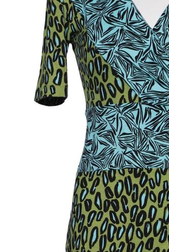 | Details | Jersey, Kurzarm, Bindegürtel, Wickeloptik, V-Ausschnitt, Motivprint |