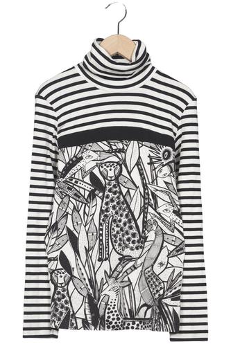 | Details | Jersey, Langarm, Rollkragen, Motivprint, Streifen |
