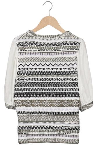| Details | Grobstrick, Dreiviertelarm, V-Ausschnitt, Ethno, Streifen |