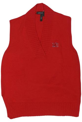 | Details | Grobstrick, ärmellos, V-Ausschnitt, Markenlogo |