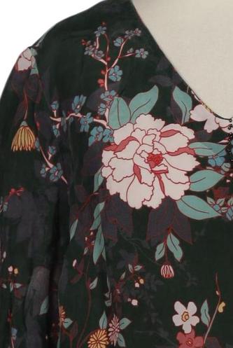 | Details | Satin, Dreiviertelarm, V-Ausschnitt, verschlusslos, Floral |